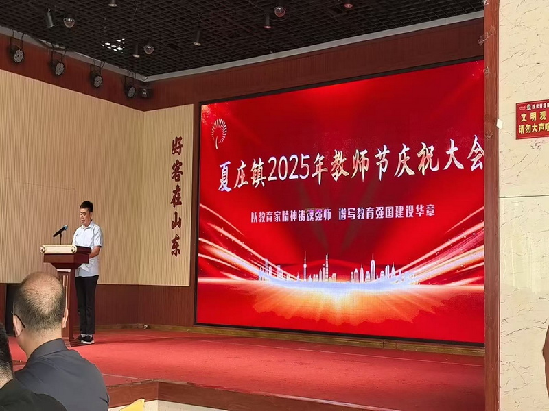 9月9日上午,夏庄镇第41个教师节庆祝大会在浮来青度假区大礼堂举行。 莒县夏庄镇党委书记、海右工业园党工委书记伦智杰,莒县教育和体育局教育发展服务中心副主任张炎等领导,与全镇幼儿园、中小学、启德培智学校、双星学校教师代表,以及人大代表、政协委员等200余人齐聚一堂,共话教育发展,礼赞师者初心。会上启德培智学校校长丁天宝做了精彩发言。