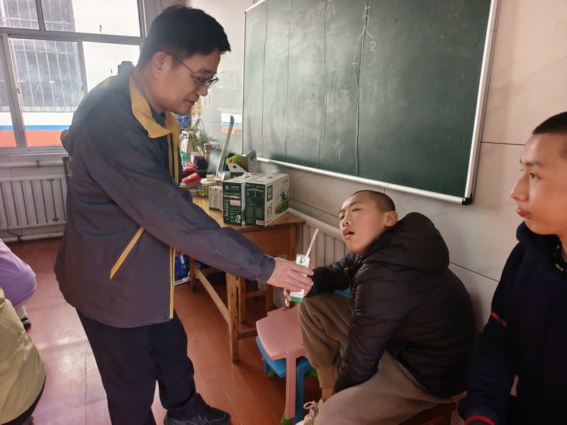 该“爱心家庭”不仅为学校带来了满满的心意:20袋精装大米、5箱牛奶及小零食等慰问品,切实为孩子们的日常生活提供支持;更走进课堂,与正在上课的特殊学生们近距离接触。他们耐心倾听孩子们的心声,用温柔的话语与亲切的互动,拉近了与孩子们的距离,让孩子们在欢声笑语中感受到来自社会大家庭的温暖,也为特殊学生们的成长之路增添了一抹温暖亮色。