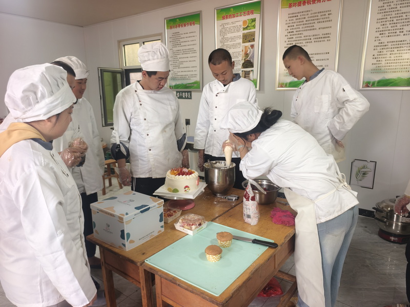 在实训教室里,孩子们专注的模样是最美的风景。老师俯身耐心指导,学生认真复刻动作,从和面、揉面、醒面的基础操作,到裱花、造型、摆盘的进阶技巧,每一个环节都凝聚着汗水与成长。