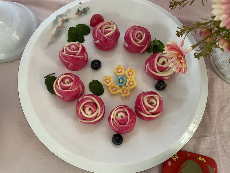从入门阶段的面条、馒头、花卷、蒸包、水饺等家常主食教学,到熟练掌握鸡蛋、土豆丝、辣椒炒肉等家常菜烹饪技巧;从进阶打造花样馒头、福袋花卷、柳叶包等造型面点,到独立完成蛋糕、曲奇、面包等烘焙制品的制作,课程内容循序渐进,既贴合学生的认知规律,又紧扣“生活技能落地、职业素养储备”的育人方向。每一道工序都经过反复拆解,每一个动作都进行细致指导,让孩子们在日复一日的实操中,逐步突破自身局限。