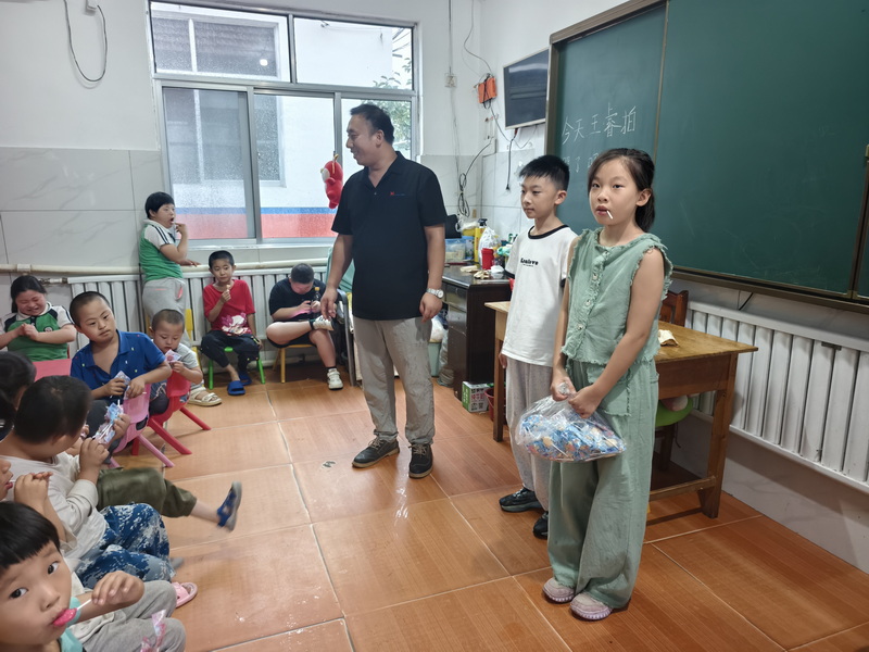 爱心跨越风雨 真情温暖童心——王先生一家冒雨驱车80公里来我校献爱心2025年8月31日下午,家住日照市市区的王先生一家冒着滂沱大雨,驱车80余公里专程来到莒县启德培智学校,看望在校特殊学生,为孩子们送来了满满的爱心物资和温暖关怀。一、爱心物资暖人心王先生一家为孩子们精心准备了:生活用品:优质拉拉裤11袋营养食品:香脆面1箱、糖果1大包衣物用品:衣物1袋这些物资都是根据特殊学生的实际需求精心挑选,体现了一家人的细致用心。二、童真互动乐融融在温馨的互动环节中:王先生上小学的女儿和外甥主动与特殊孩子
